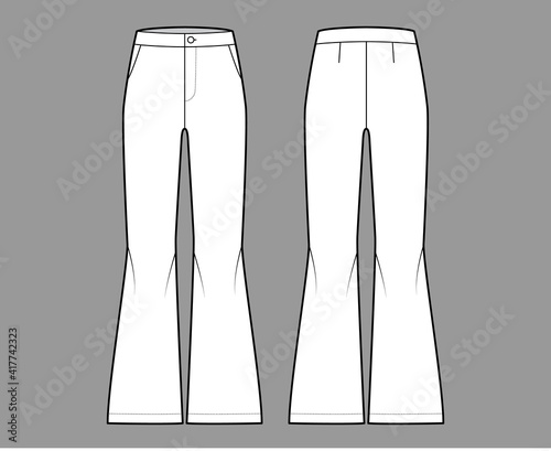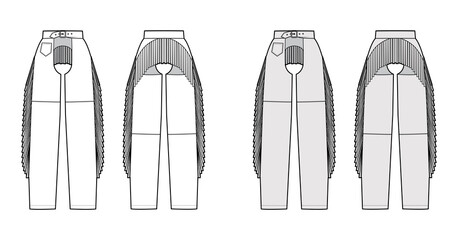 Set Of Jeans Carpenter Denim Pants Technical Fashion Illustration With Normal Low Waist High Rise 5 Pockets Flat Bottom Apparel Template Front Back White Color Style Women Men Unisex Cad Mockup 5